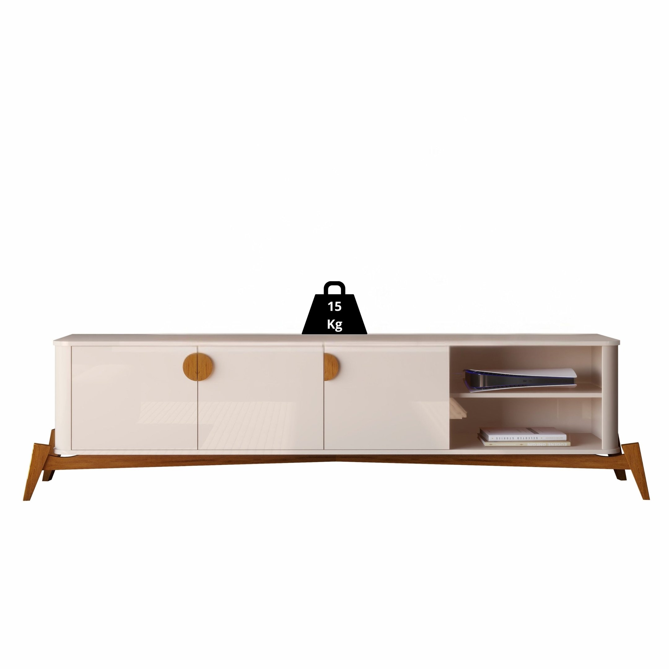 Estilo: Moderno | Peso (kg): 33.5 | Garantia: 06 Meses | Altura (cm): 54.5 | Acabamento: Pintura Uv | Largura (cm): 195 | Possui Pés: Sim | Possui Adega: Não | Possui Vidro: Não | Possui Nichos: 4 | Tipo De Porta: Bater | Altura Dos Pés: 20 | Possui Gavetas: Não | Possui Rodízio: Não | Suporta Até (kg): 15 | Profundidade (cm): 43 | Escala De Brilho: Semi-brilho | Material Dos Pés: Madeira Maciça | Serviço Montagem: 114259443 | Material Da Porta: Mdf | Origem Do Produto: Nacional | Possui Iluminação: Não | Acabamento Dos Pés: Verniz | Ambiente Principal: Sala De Estar | Material Principal: Mdf | Possui Prateleiras: Sim | Acabamento Da Porta: Pintura Uv | Sapatas Niveladoras: Não | Material Da Prateleira: Mdf | Quantidade De Espelhos: Não | Acabamento Da Prateleira: Pintura Uv | Tipo De Puxador Da Porta: Externo | Escala De Brilho Da Porta: Semi-brilho | Peso Máximo Por Prateleira: 2 | Ideal Para Tvs Até (polegadas): 75 | Material Do Puxador Da Porta: Madeira | Escala De Brilho Da Prateleira: Semi-brilho | Tipo De Madeira Maciça Dos Pés: Pinus | Tipo De Dobradiça/corrediça Da Porta: Metálica | Fabricante: Jb Bechara | Marca: Jb Bechara | Cor Flex: Não | Cor Interna: Offwhite | Cor: Off White | Cor Do Produto: Offwhite | Itens Inclusos: 1 Rack 1 Kit De Ferragens 1 Manual De Montagem. | Cor Predominante: Bege | Cor Da Caixa: Off White | Cor Da Porta: Off White | Estilo Do Pé: Retrô De Madeira | Modelo De Porta: Porta Premium | Quantidade De Prateleiras: 02 Prateleiras