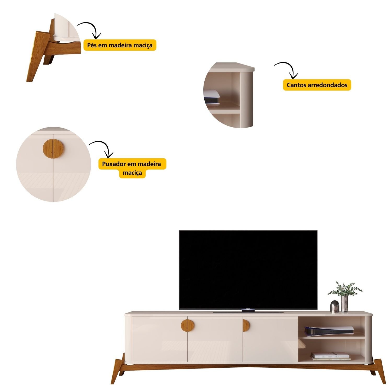 - Rack Para Tv Até 75 Polegadas 140cm Com Puxador E Pés Em Madeira Maciça Buriti Offwhite