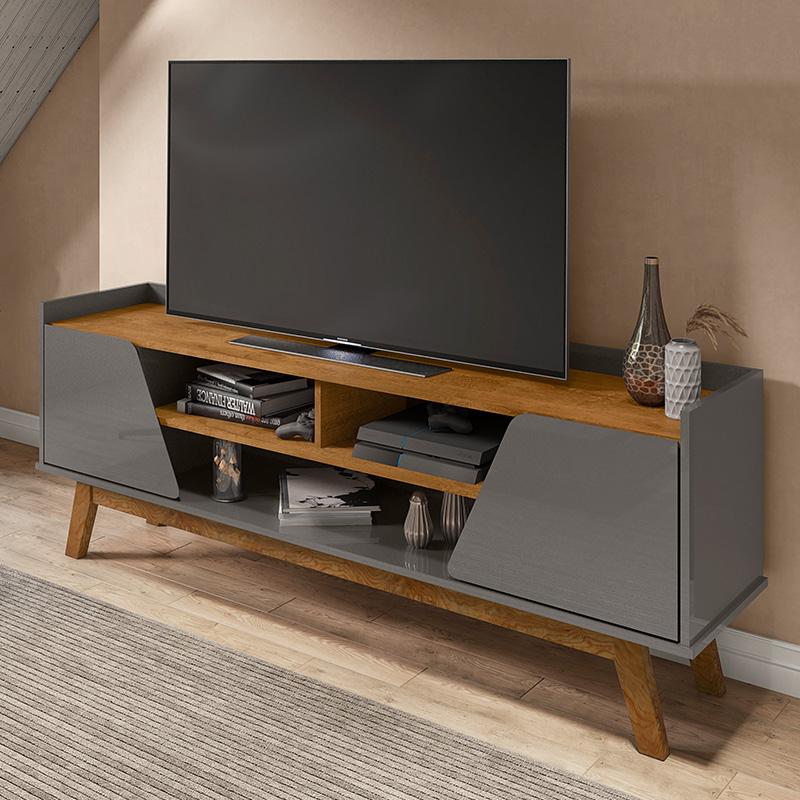 - Rack Sala Turim Para Tv Até 65 Polegadas Com Pés Madeira Preto Fosco/naturale