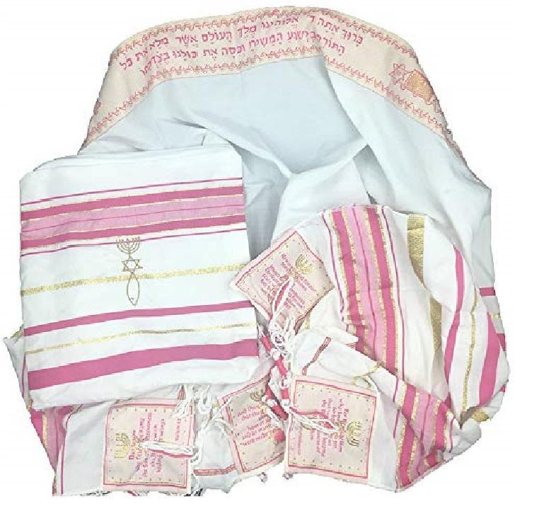 Talit Totalmente Rosa Messiânico - 55x180 Cm - De Israel