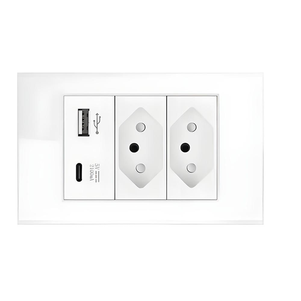 Tomada Padrão Brasileiro Com Entrada Usb E Usb-c, 10a, Painel Em Vidro Temperado - Branco Principais Características: